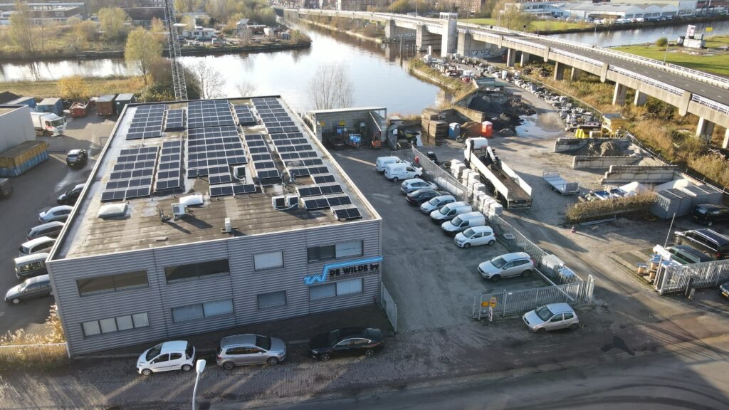 Sinds 2023 beschikt Wegenbouw De Wilde bv over een nieuwe zonnepaneleninstallatie met 242 panelen. Deze zonnepaneleninstallatie zorgt er voor dat wij elektrisch zelfvoorzienend zijn en in de toekomst ook blijven, terwijl er nieuw elektrisch materieel wordt aangeschaft. Kortom, de elektrische energie die wij gebruiken is groene energie van de zon.